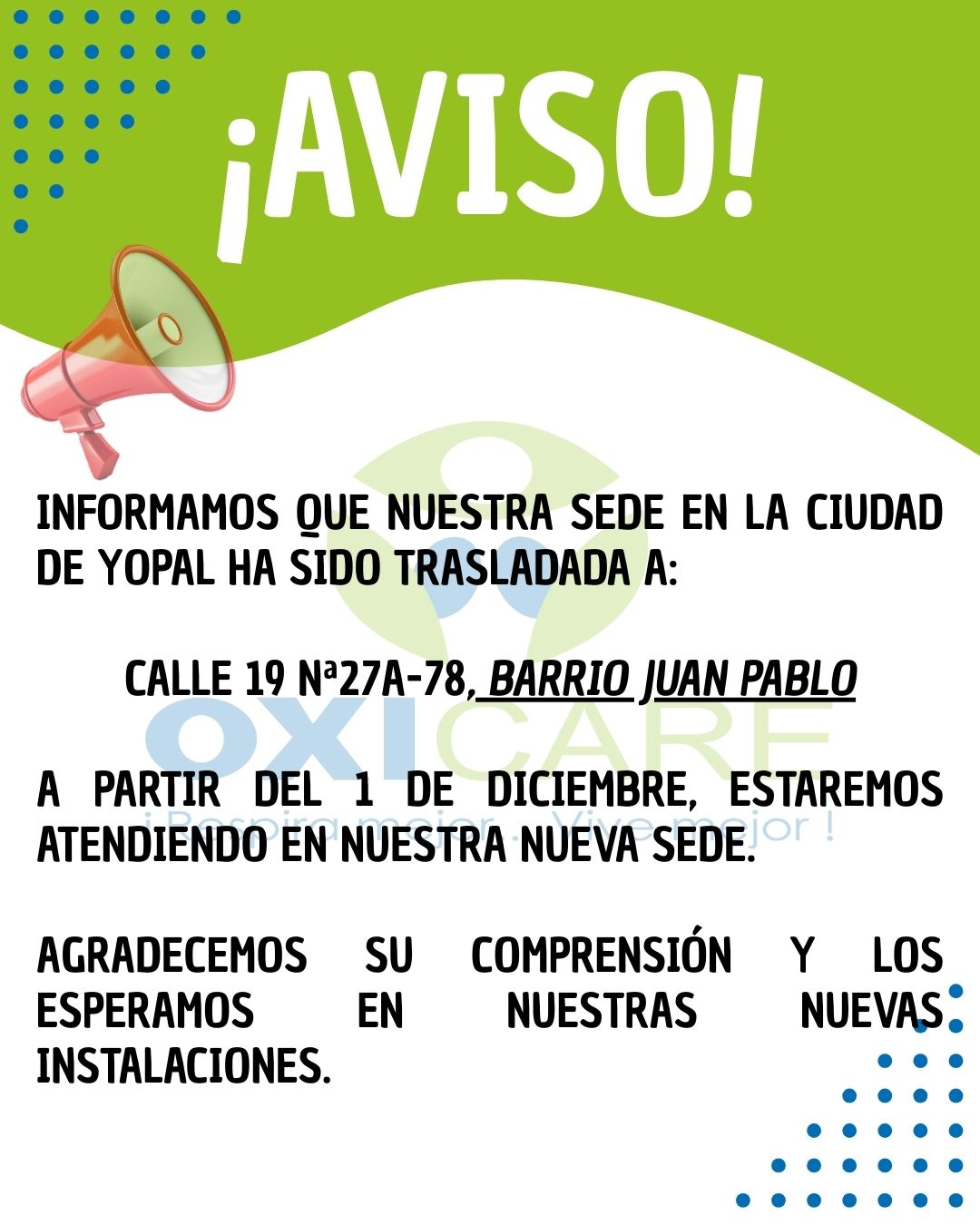 Para el año 2030 OXI CARE, será una institución prestadora de servicios en salud ambulatorios; acreditada y reconocida en el mercado por brindar la mejor atención a pacientes con patologías respiratorias y por la excelente calidad en el suministro de Oxígeno medicinal.